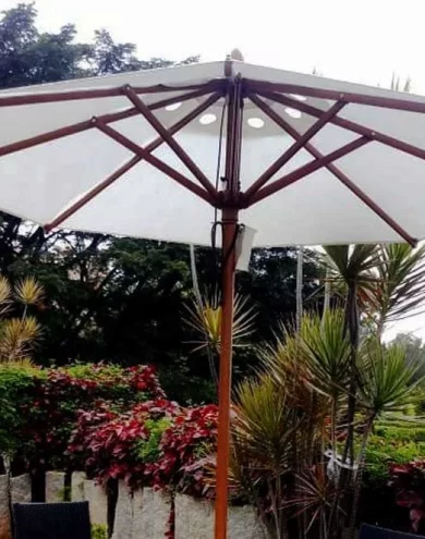 Our Wooden finish umbrella is perfectly suited for beachside, poolside, garden, and terrace conditions. Designed to withstand harsh weather, it features hardwood poles and folding frames with a protective Polyurethane coating that provides exceptional resistance to abrasion, scratches, and rough use. The rope pulley mechanism adds elegance and ease of operation, making it an ideal choice for both residential and commercial spaces. Available in various sizes and designs, it seamlessly blends functionality with aesthetics, enhancing the ambiance of your outdoor areas.